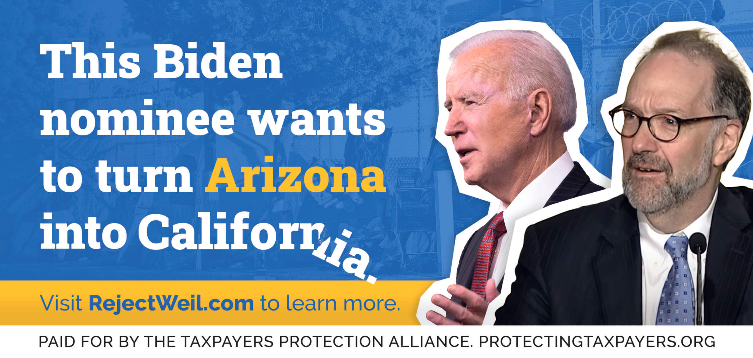 WASHINGTON, D.C. – Today, the Taxpayers Protection Alliance (TPA) announced the start of a digital and billboard campaign urging Arizona Sens. Kyrsten Sinema (D) and Mark Kelly (D) to oppose the nomination of David Weil to head the Department of Labor’s Wage & Hour Division. The billboards direct Sens. Synema and Kelly, as well as their Arizonan constituents, to visit rejectweil.com to see why David Weil is bad for Arizonans, and all Americans.